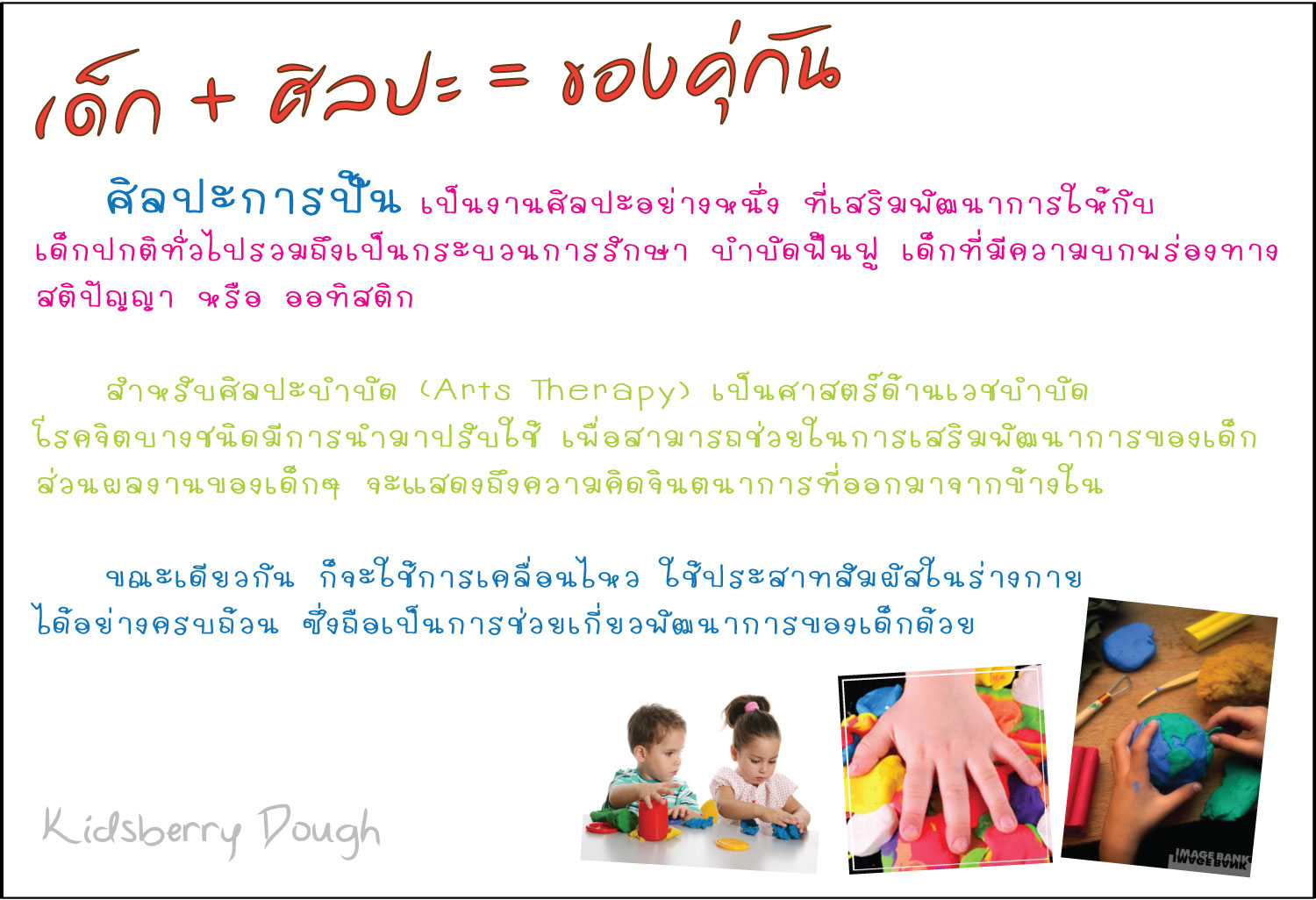>>>>>>>ศิลปะการปั้นแป้งโดว์เป็นอีกหนึ่งวิธีการที่จะช่วยเสริมสร้างพัฒนาการกล้ามเนื้อ เช่น นิ้วมือ และพัฒนาการเรียนรู้ของเด็กๆ เหมาะสำหรับน้องๆ ที่มีวัยตั้งแต่สองขวบขึ้นไป เป็นกิจกรรมสนุกสนานที่สามารถร่วมกันทำในในครอบครัวได้เป็นอย่างดี กิจกรรมเล็กๆ นี้จะส่งผลให้น้องมีพัฒนาการที่ดีในการเขียนหนังสือและยังช่วยส่งเสริมจินตนาการตลอดจนความคิดสร้างสรรค์ของตัวเอง ด้วยคะ