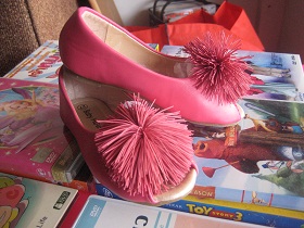 sb01 รองเท้าหนัง หน้าโบว์คริสตัล มีเบอร์ 24, 25 และ 28 ค่ะ ราคาคู่ละ 350 บาท พร้อมสายรัดสีดำกันหลุด