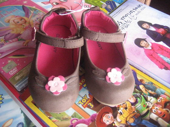 sb05 รองเท้าเด็กหญิง old navy สีน้ำตาล ที่คาดเป็นกาว ไซส์ 5 อายุประมาณ 6-12 เดือน ราคา 300 บาท