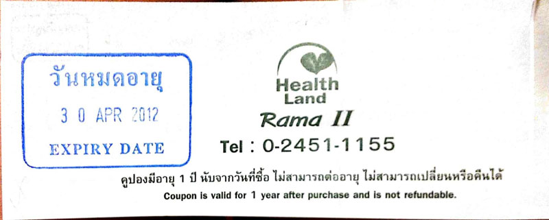 หมดอายุ 30 เมษายน 2555 ใช้ได้ที่ Health Land ทุกสาขา