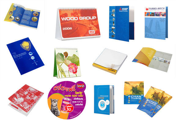 3. งานพิมพ์ออฟเซต เช่น โบรชัวร์ แผ่นพับ หนังสือ วารสาร รายงานประจำปี