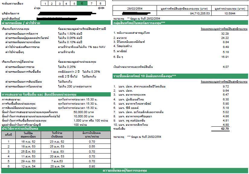 จะเห็นว่าผลตอบแทนก็อยู่ในระดับที่สูงกว่าการฝากประจำ(เฉลี่ยปี 2553 หลังหักภาษี ดอกเบี้ยฝากประจำอยู่ที่ 2.3x)