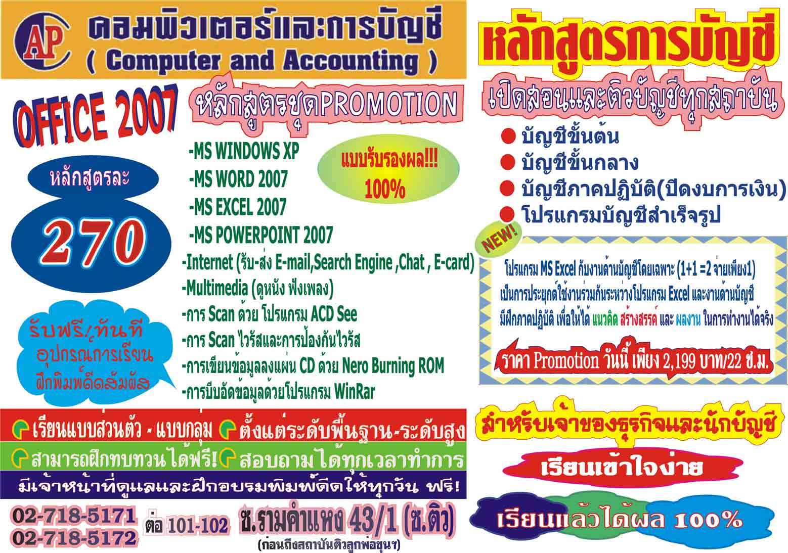 รับสอนบัญชีภาคปฎิบัติ,รับทำบัญชีรายเดือน/ปี,จัดหางาน,คอมพิวเตอร์,บัญชี