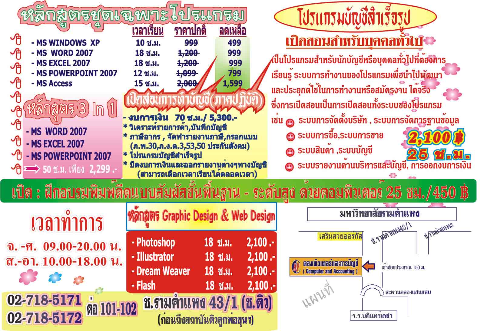 สถาบันของเรายังเปิดสอนคอมพิวเตอร์ตั้งแต่ระดับพื้นฐาน-ระดับขั้นสูง