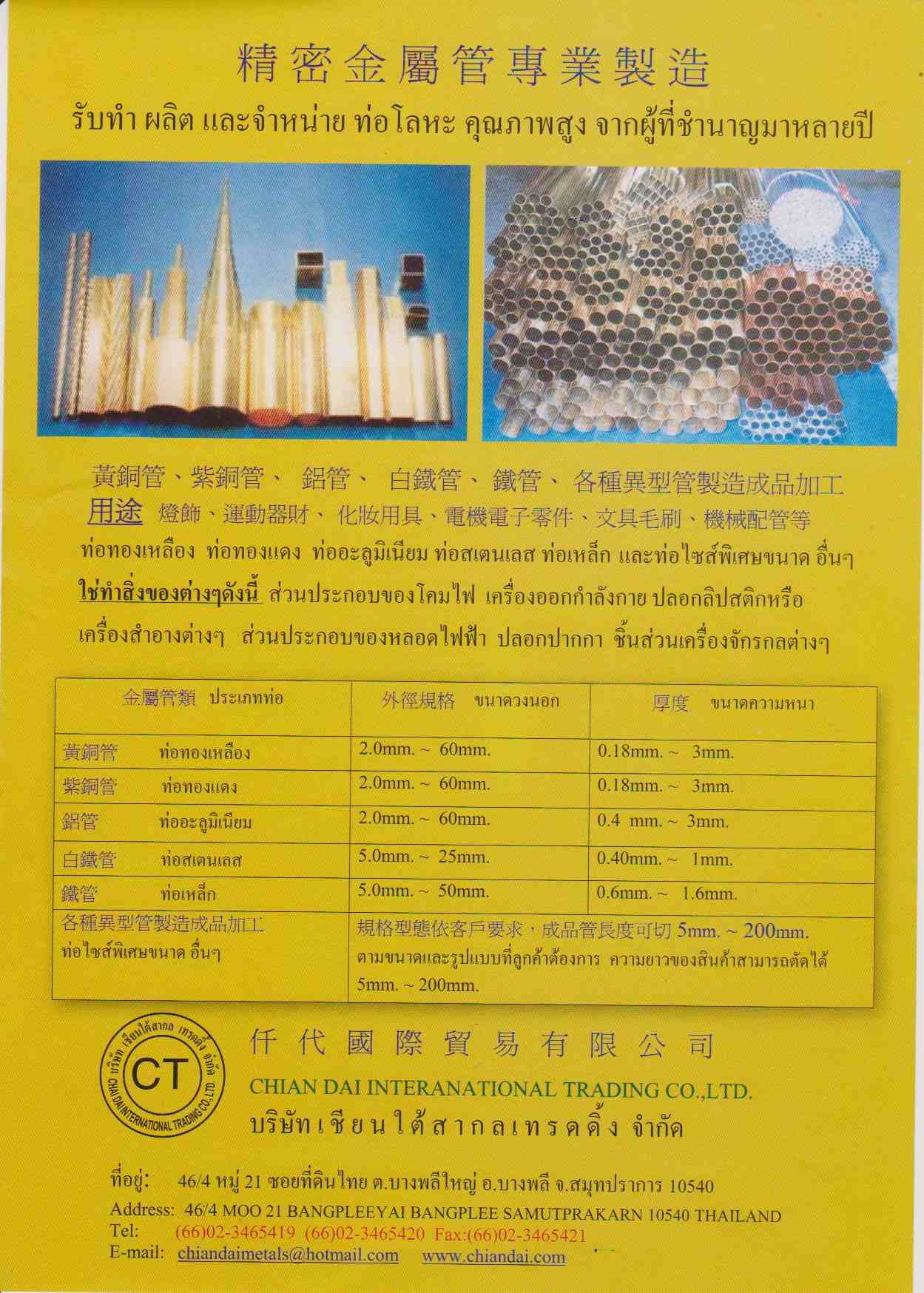 ผลิต และ จำหน่าย ท่อทองเหลือง ท่อทองแดง ท่ออลูมิเนียม ท่อแสตนเลส