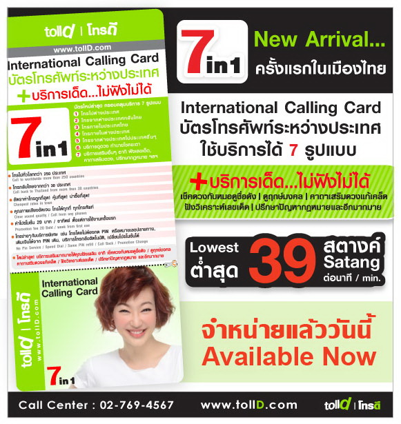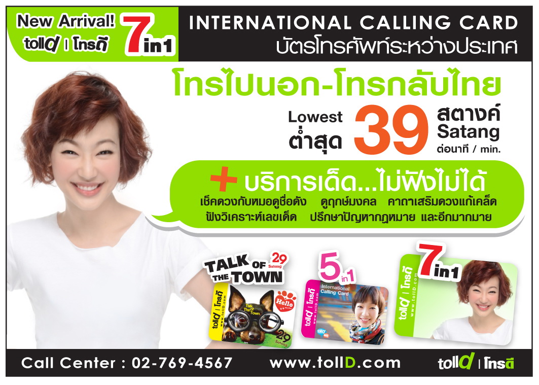 บัตรโทรศัพท์ระหว่างประเทศ TollD 7in1 ค่าโทรเริ่มต้น 39 สตางค์ พร้อมบริการเด็ด...ไม่ฟังไม่ได้