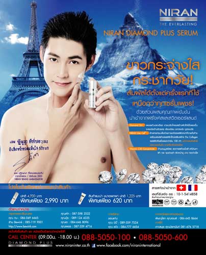 ครีมหน้าใสที่มีคุณค่าของเซรั่มเพชร ผสานกับเทคโนโลยี Niran Live cell เทคโนโลยีล่าสุดจาก ฝรั่งเศส และสวิสเซอร์แลนด์