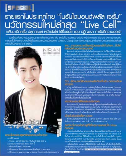 ด้วยสารสกัดอันเลอค่าจากเพชรแท้ผสานกับเทคโนโลยีขั้นสูงล่าสุดNiran Live Cell สารสกัด