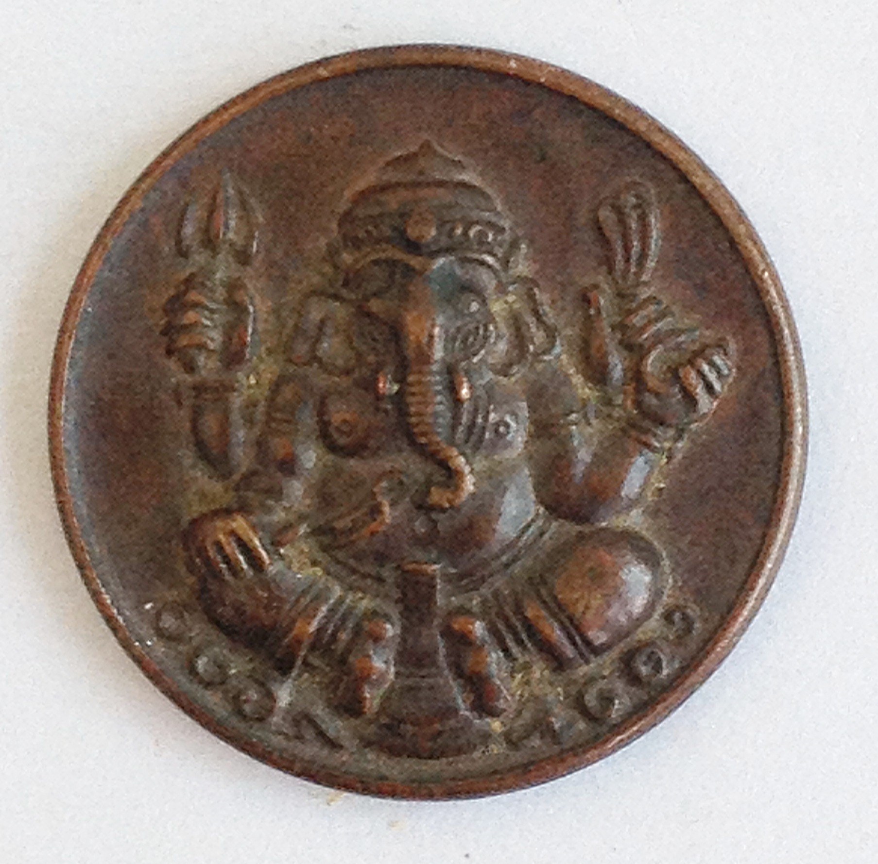 เหรียญพระพิฆเนศ ศาลเจ้าพ่อหลักเมืองพระประแดง รุ่นแรก ปี 2519 เนื้อทองแดง บล็อกใหญ่นิยม