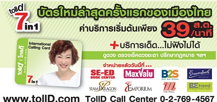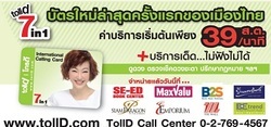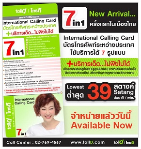 บัตรใหม่ล่าสุด ครั้งแรกในเมืองไทย!!!บัตรโทรศัพท์ระหว่างประเทศ TollD 7in1 พร้อมบริการเด็ด...ไม่ฟังไม่ได้