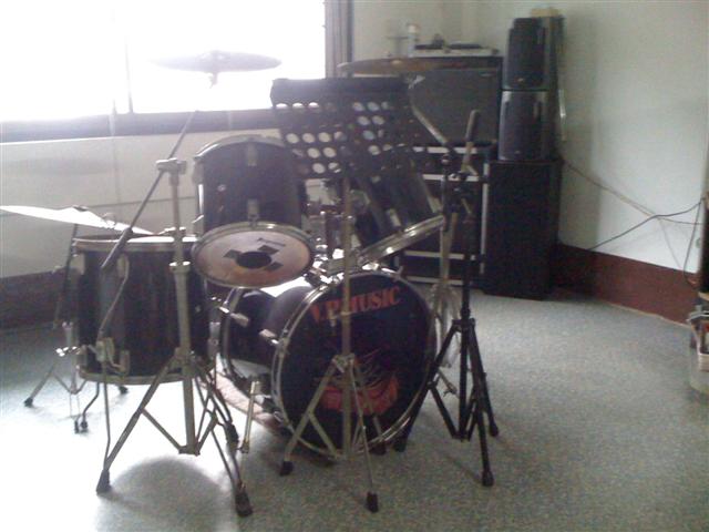 กลองชุด แต่ผมไม่ทราบยี่ห้อนะครับ ผมเปลี่ยนหนังกลองไปแล้วครับ ตรงที่เหยียบไฮแฮท pearl