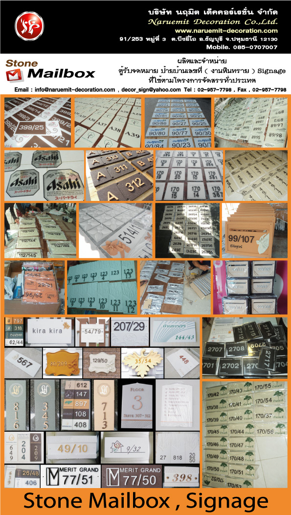 บจก.นฤมิต เด็คคอร์เรชั่น โรงงานผลิตตู้รับจดหมายและป้ายบ้านเลขที่หินทรายตามโครงการทั่วไป