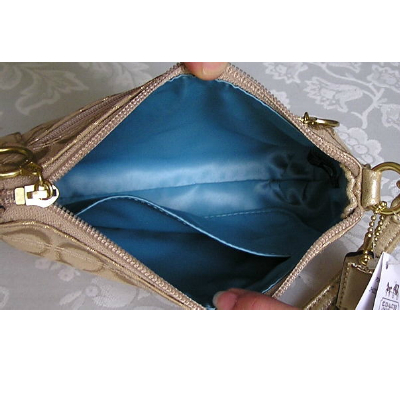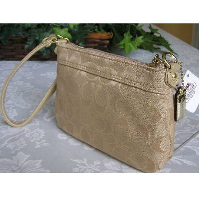 COACH POPPY SIGNATURE LUREX LARGE WRISTLET BAG PURSE
