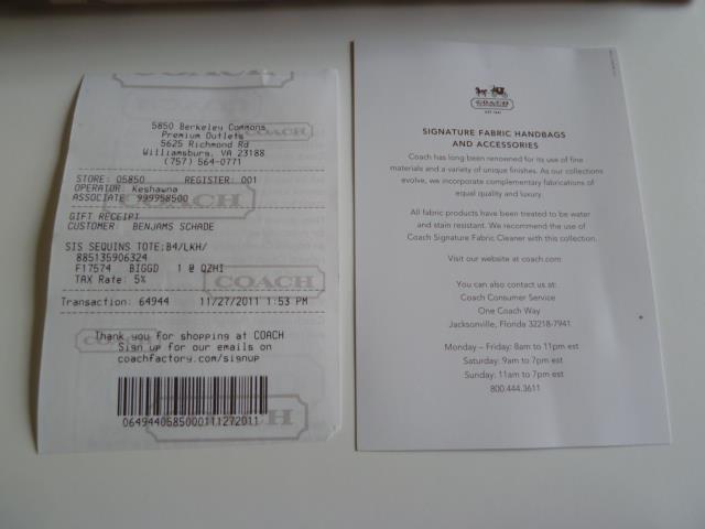 COACH ทุกใบมี Care Card และ Gif Reciept ให้ค่ะ