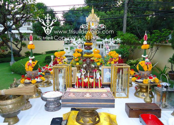 ภาพพิธีพราหมณ์ต่างๆ เป็นภาพเพียงบางส่วนในช่วงกลางปี 2009 ที่ผ่านมาจนถึงปัจจุบัน สำหรับภาพชุดเก่าทั้งหมดนั้นเนื่องจากตรวจพบว่า มีไวรัสทำให้ไฟล์ภาพเสียหายไม่สามารถนำเสนอได้ และตาม พ.ร.บ. ลิขสิทธิ์ 2537 ห้ามมิให้ผู้ใดทำซ้ำ คัดลอก ดัดแปลง แก้ไข เลียนแบบ ข้อความและหรือรูปภาพไม่ว่า ส่วนหนึ่งส่วนใดหรือทั้งหมด และหรือประกาศเผยแพร่โฆษณาในระบบอินเตอร์เน็ท เว็บไซต์ หรือสื่ออื่นๆ โดยปราศจากการยินยอมจากเว็บไซต์ตรีศุลี เทวาลัยhttp://www.trisulidevalai.com เป็นลายลักษณ์อักษร ผู้กระทำละเมิดจะถูกดำเนินคดีตามขั้นตอนทางกฎหมายสูงสุด