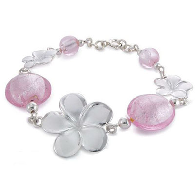 สร้อยข้อมือเงินดอกไม้ประดับมูราโน่