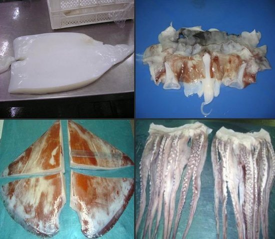 ขายคอหมึกยักษ์ นำเข้าจากประเทศเปรู นอกจากนี้ยังมี หนวด ปีก เนื้อ และ เศษเนื้อ