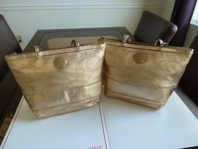 พร้อม ส่ง COACH SIGNATURE STRIPE STITCHED METALLIC TOTE F18877 หนังทอง ราคา 5500 บาท
