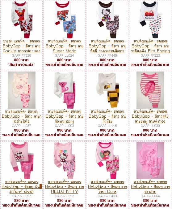 จำหน่ายเสื้อผ้าเด็ก นำเข้า สไตล์เกาหลี ญี่ปุ่น สินค้านำเข้าจากจีน สินค้าเกินออเดอร์จากโรงงาน คุณภาพดีราคาถูก ชุดนอน baby gap, สินค้าจาก Busha และอื่นๆ อีกมาก ขายส่งยกแพ็ค นำไปขายต่อได้กำไรดี ขายปลีกราคาถูก