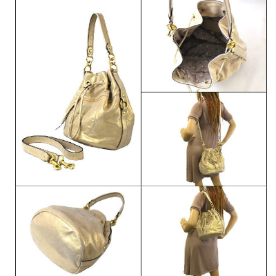COACH Poppy Gold Metallic Leather Cinch Handbag Purse