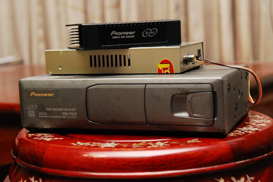 ตู้ซีดี pioneer CDX-P650 พร้อมตลับซีดี 6 แผ่น สภาพทำงานได้ปกติเช่นกันครับ (ตัวนี้ตอนติดตั้งตั้งแต่แรก เคยแปลงเชื่อมกับกล่องสัญญาณ เพื่อให้อ่านแผ่นวีซีดีได้ แต่ปัจจุบันกล่องแปลงมันไม่ทำงานแล้ว(มีแต่เสียง ไม่มีสัญญาณภาพ) คงเหลือแต่เล่นแผ่น audio CD เท่านั้นครับ)