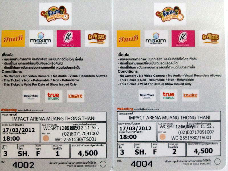 [ขาย] บัตร SS4 รอบวันเสาร์ที่17 บัตร 4500 โซน SH แถว F 2ใบติด