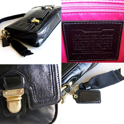 Coach Poppy Pushlock Flap Bag Crossbody Leather Black