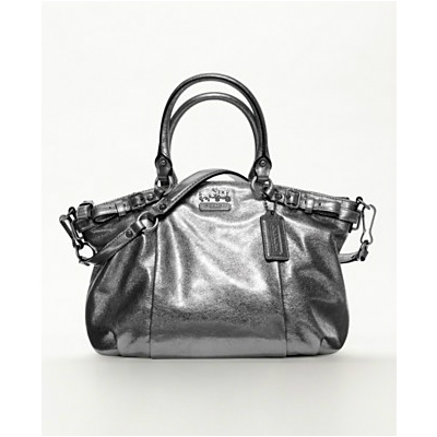 COACH MADISON METALLIC LEATHER SOPHIA SATCHEL GUNMETAL