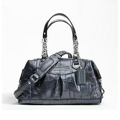 Coach Ashley Exotic Embossed Slate Leather Satchel Purse Bag