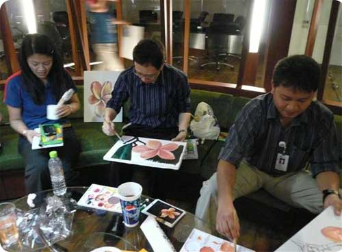 - กิจกรรมสอนเพ้นท์สีอะครีลิค สำหรับพนักงานบริษัทชินคอร์ป