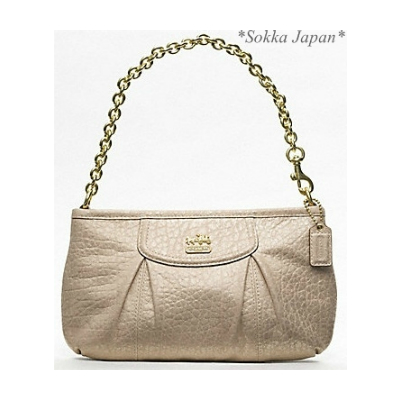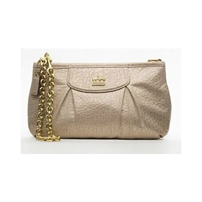 COACH MADISON GOLD EMBOSSED LEATHER LARGE WRISTLET WITH CHAIN