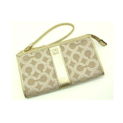 COACH JULIA OP ART GOLD KHAKI BEIGE ZIP WRISTLET WALLET