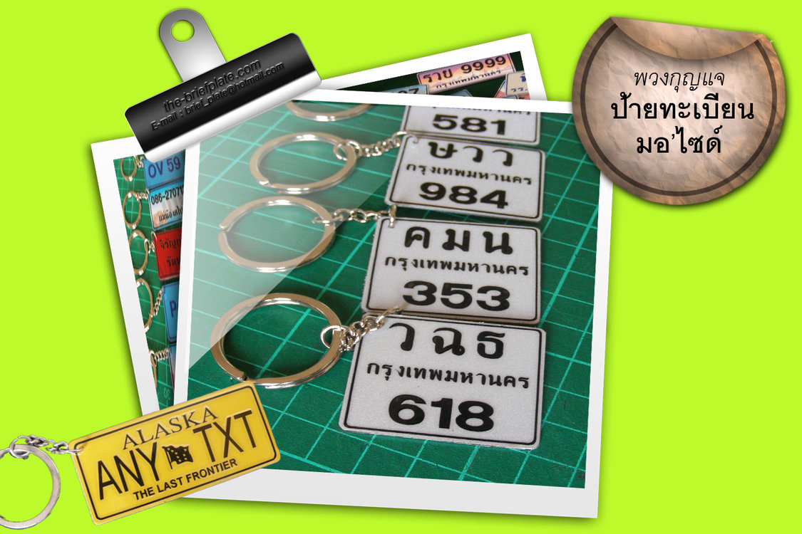 รับสั่งทำป้ายทะเบียนรถยนต์ทุกชนิด ป้ายข้อความต่างๆ ป้ายจบมหา'ลัย ป้ายรุ่นต่างๆ ป้ายพนักงาน โลโก้บริษัทฯ ของขวัญ ของชำร่วย และอีกมากมายหลายไอเดียของคุณ ในรูปแบบพวงกุญแจ วัสดุเป็นแสตนเลส คุณมีไอเดียบอกเรา เราทำให้ ในราคาที่ถูกใจ จัดส่งทั่วโลก นอกจากนั้น เรายังรับสอน ในการทำป้ายทะเบียนพวงกุญแจ จัดเต็มกันเลย พร้อมอุปกรณ์การทำ ครอบเซ็ต รับสอนถึงบ้าน สอนทุกขั้นตอน ในการทำ บอกเล็ดลับในการทำ เทคนิคต่างๆ ที่ทำให้ชิ้นงานออกมา แบบมืออาชีพ ไม่ใช่ทำกันชุ่ยๆ เพื่อเอาเงินลูกค้า งานเน้นคุณภาพ จัดส่งถึงที่ ทั่วราชอาณาจักรไทย และทั่วโลก ที่สนใจอยากทำ สอนกันจนเป็นทำกันใจเย็นๆ อาชีพสร้างรายได้ เพื่อให้คุณได้นำไปประกอบอาชีพ สร้างเสริมรายได้ จากรายได้หลัก หรือจะทำเป็นงานหลักเลยก็ได้ ลงทุนต่ำ คืนทุนเร็ว กำไรงาม นี่คือคำตอบสุดท้าย ที่คุณจะต้องตัดสินใจ