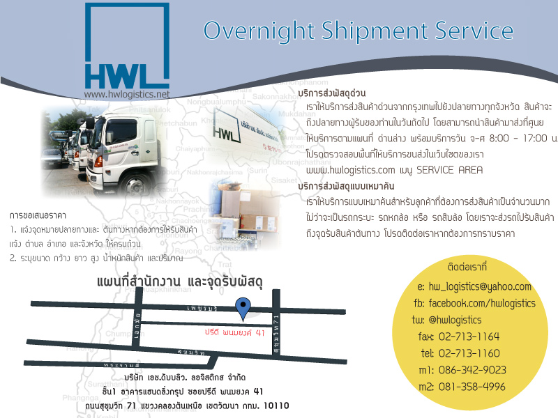 | ติดต่อ: | HW Logistics | อีเมล์: |  |