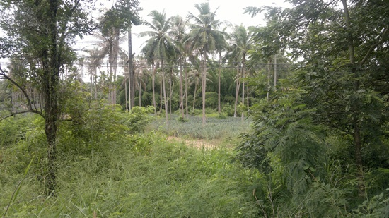 ขายด่วนที่ดินพร้อมสวนมะพร้าวและสับปะรดที่ปลูกในร่องสวน ทำเลสวยมาก