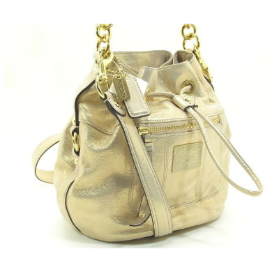 COACH Poppy Gold Metallic Leather Cinch Handbag Purse