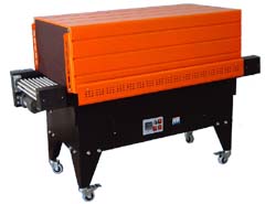 เป็นเครื่องอบฟิล์มหดชนิดต่อเนื่องโดยการใช้หลอดเปล่งแสงอินฟราเรดมาใช้ในการให้ความร้อน อุณหภูมิที่ใช้อบคงที่และความเร็วในการเคลื่อนที่ของสายพานสามารถปรับระดับได้ ผลิตภัณฑ์ที่ได้รับการบรรจุจะปลอดภัยจากความชื้นและป้องกันการกระแทกได้ เหมาะสำหรับการห่อหุ้มชิ้นส่วนที่มีลักษณะกระจายและผลิตภัณฑ์ที่มีฐานรองมีสายพานแบบตาข่ายหรือลูกกลิ้งเพื่อความสะดวกในการลำเลียงมีระยะของช่องอบที่ยาว การให้ความร้อนจะขึ้นอยู่กับรูปร่างของวัตถุ เป็นระบบปิดนำลมร้อนที่ใช้แล้วกลับไปใช้ใหม่ ควบคุมความร้อนด้วยความถี่ที่เกิดจากการเปลี่ยนแปลงรูปร่างวัตถุ เป็นระบบปิดนำลมร้อนที่ใช้แล้วกลับไปใช้ใหม่