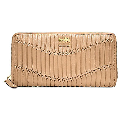 COACH MADISON GATHERED Tuberose Pink LEATHER ZIP Wallet