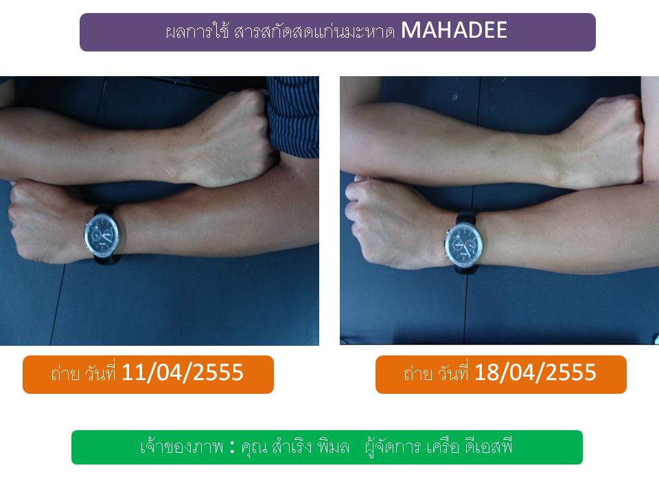 นี่คือ !!! สารสกัดจากแก่นมะหาด ที่มีความบริสุทธิ์สูงสุดของวงการ ไม่มีน้ำสักหยด ไม่มีสารกันบูด ไม่มีกลิ่น มีความเสถียรสูง สกัดร้อนโดยเมทานอล ผ่านเครื่องมือที่มีศักยภาพสูงสุด มีผลงานวิจัยระดับประเทศรับรอง คิดค้นและพัฒนาโดยนักวิจัยคนแรกของประเทศไทยที่มีความรู้เรื่องแก่นมะหาดเป็นอย่างดี เลขที่ จดแจ้ง อย. 44-1-5300001 ... สนใจนำไปเป็นส่วนผสมของเครื่องสำอาง เพื่อช่วยให้ผิวขาว ลดฝ้า หรือ หยุดผมร่วง แก้ปัญหา ศรีษะล้าน ติดต่อ 080 - 1959788 ครับ เราคือผู้ผลิต จึงกล้่าการันตี คุณภาพ ชมรายละเอียดเพิ่มเติมได้ที่ www.mahadkaow.com ขอบคุณครับ
