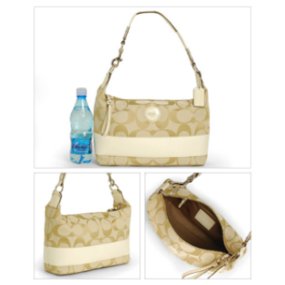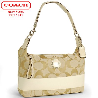 Coach Signature Stripe Hobo Bag Light Khaki White