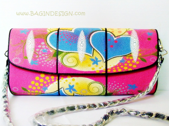 กระเป๋าสะพาย สุภาพสตรี ทำจากหนังปลากระเบน เพ้นท์สีลายสดใส
