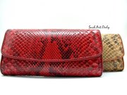 กระเป๋าสตางค์ขนาด 3 พับ หนังงู สีแดงเข้ม