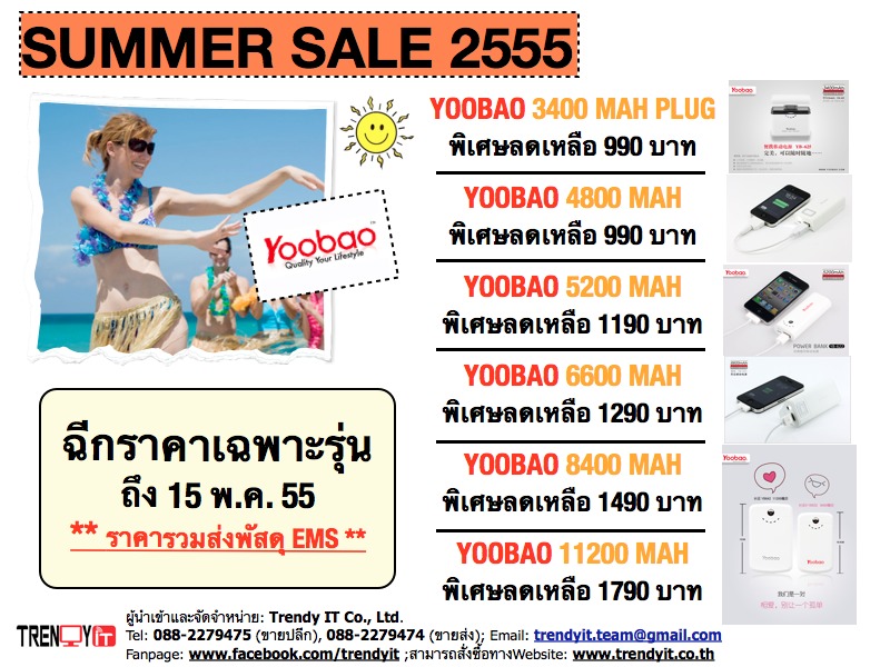 เพื่อUpdate ข้อมูลข่าวสารเพิ่มเติมนะคะทางTrendy IT จะมีทำโปรโมชั่นYoobao Powerbank แบตสำรองออกมาเรื่อยๆค่ะ
