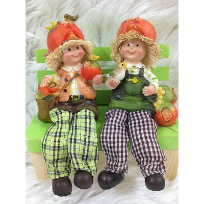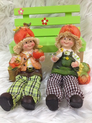 ตุ๊กตาสามารถนั่งห้อยขาได้ มาเป็นคู่ พร้อมม้านั่งสีเขียวสดใส เพ้นท์รูปดอกไม้น่ารักๆ ค่ะ