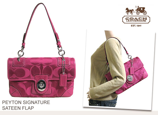 Coach FUCHSIA PEYTON SIGNATURE FLAP BAG