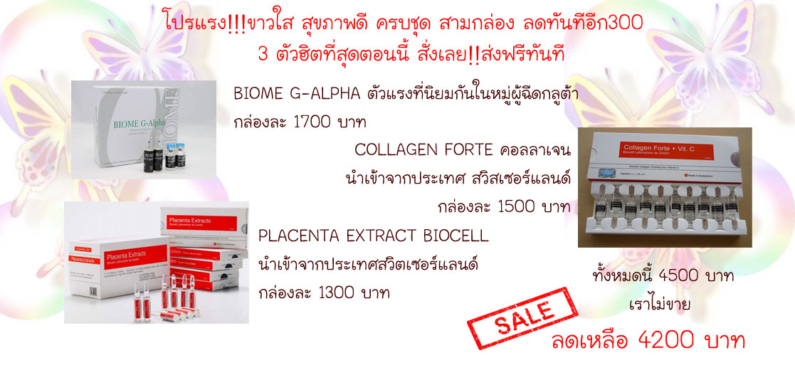 | คำค้น: | กลูต้าแบบฉีด | กลูต้าไธโอนแบบฉีด | Placenta | รก | รกเด็ก | รกแกะ | แอลคาร์นิทีน | Lcarnitine | คอลลาเจน | collagen | | ||||
