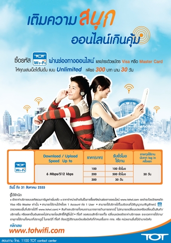 ซื้อรหัส TOT Wi-Fi ผ่านทางออนไลน์ ได้เกินคุ้ม