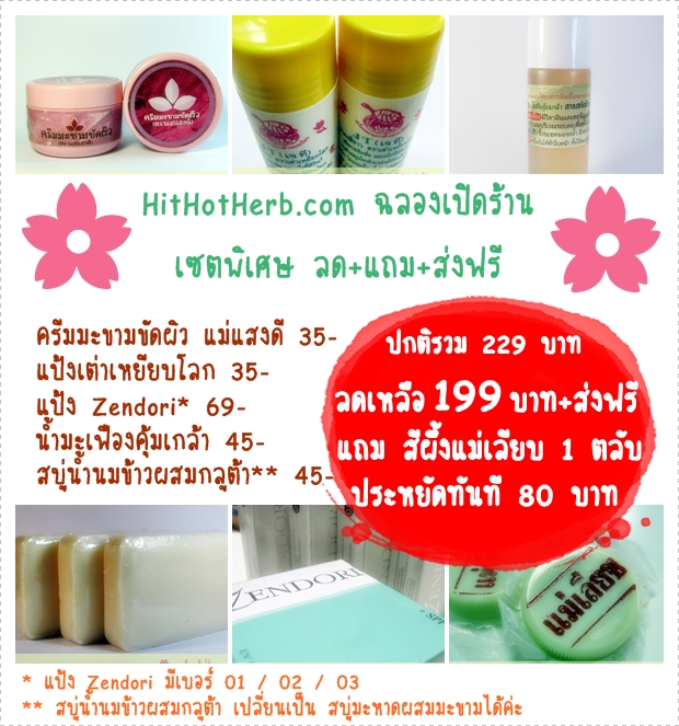ครีมมะขามพะเยา น้ำมะเฟืองคุ้มเกล้า แป้งเต่าเหยียบโลก Zendori สบู่น้ำนมข้าวผสมกลูต้า หมดนี่ 199 บาท แถมสีผึ้งแม่เลียบ + ส่งฟรี (หมดเขต 5 มิถุ
