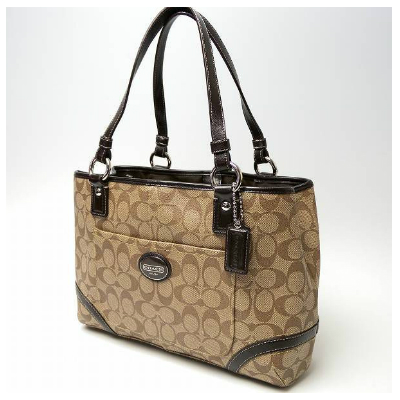 COACH SIGNATURE HERITAGE KHAKI SHOPPER BAG TOTE