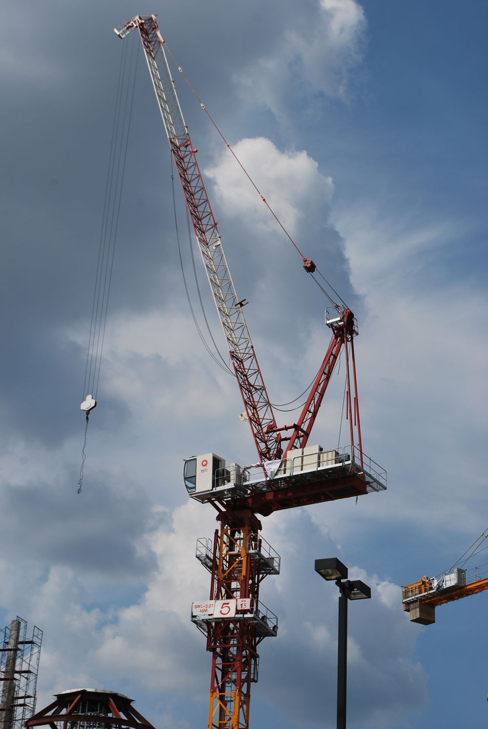 ทาวเวอร์เครนชนิดบูมกระดก (Luffing Jib Tower Crane) ขนาดตั้งแต่ 5-10 ตัน แขนยาว 40-50 เมตร